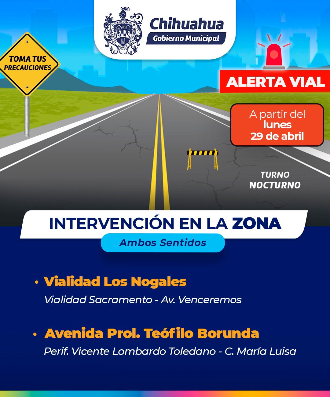 ¡Alerta Vial! Recuerda circular con precaución en vialidad Los Nogales y prolongación Teófilo Borunda