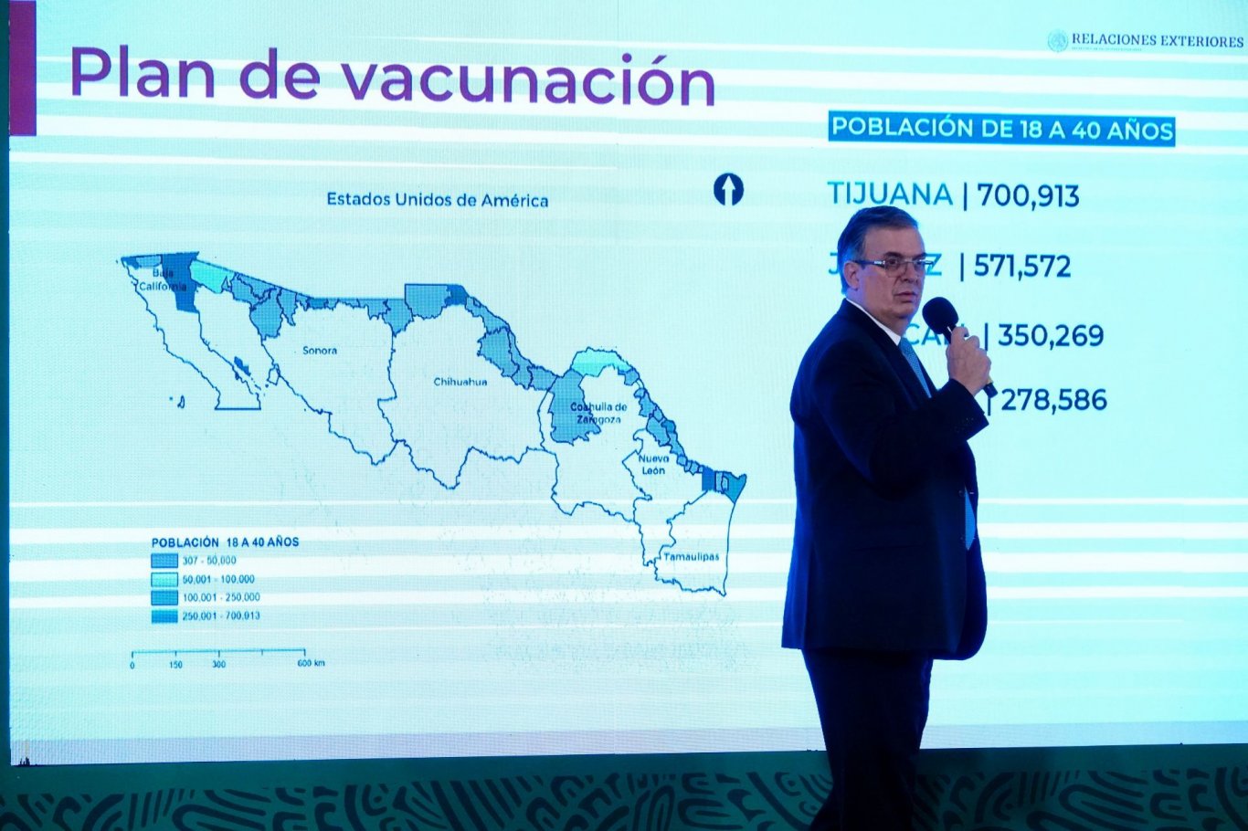 Ebrard añadió que los municipios donde se aplicarán las vacunas pertenecen a los estados de Baja California, Sonora, Chihuahua, Coahuila, Nuevo León y Tamaulipas, con el fin de que se agilice o acelere la reapertura de las actividades en la frontera entre México y Estados Unidos.