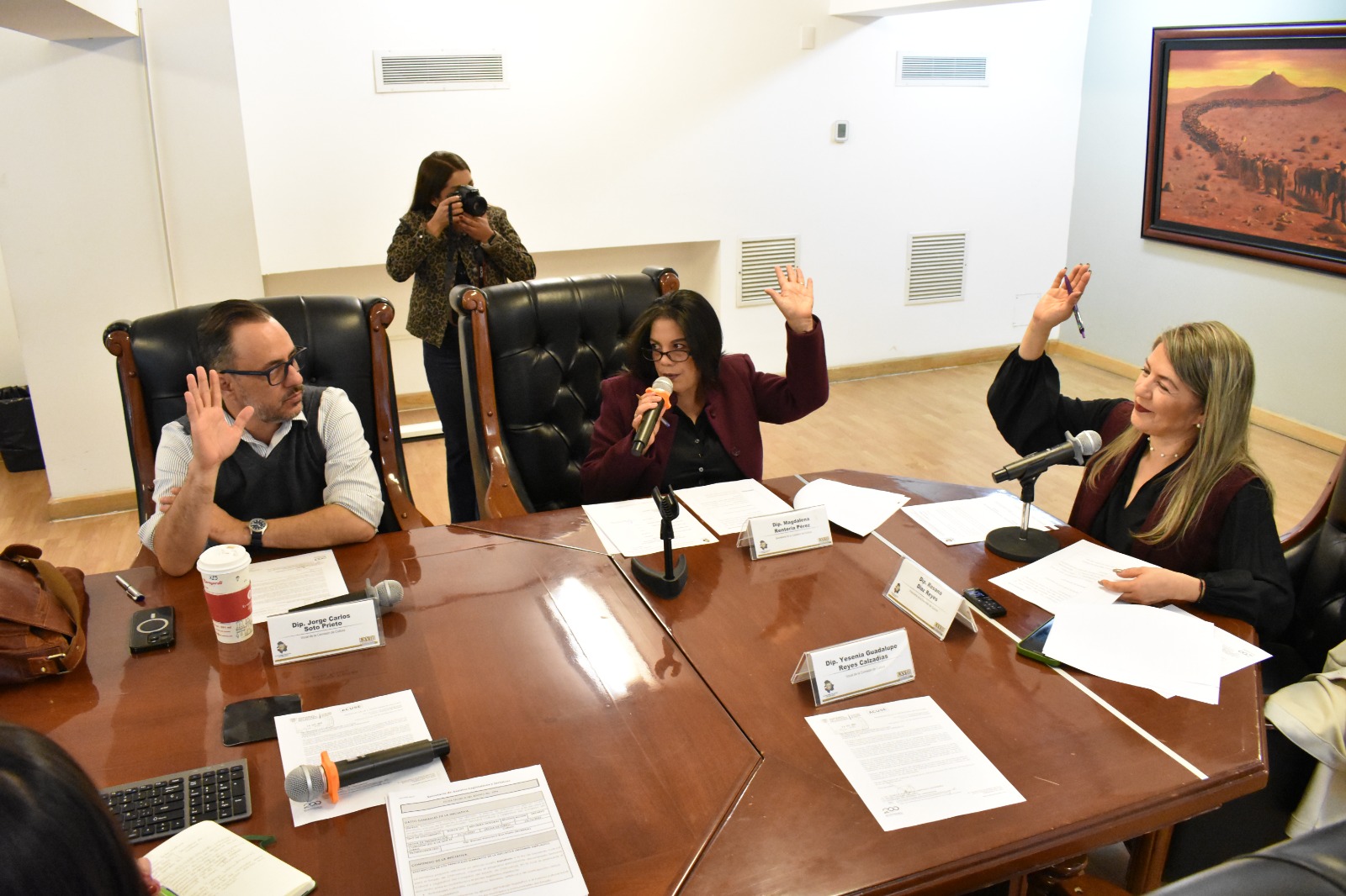 Cabe mencionar que en esta reunión de trabajo, estuvieron presentes las y los diputados: Rosana Díaz en su calidad de presidenta, así como Magdalena Rentería como secretaria y vocales: Jorge Soto, Yesenia Reyes y Roberto Carreón.