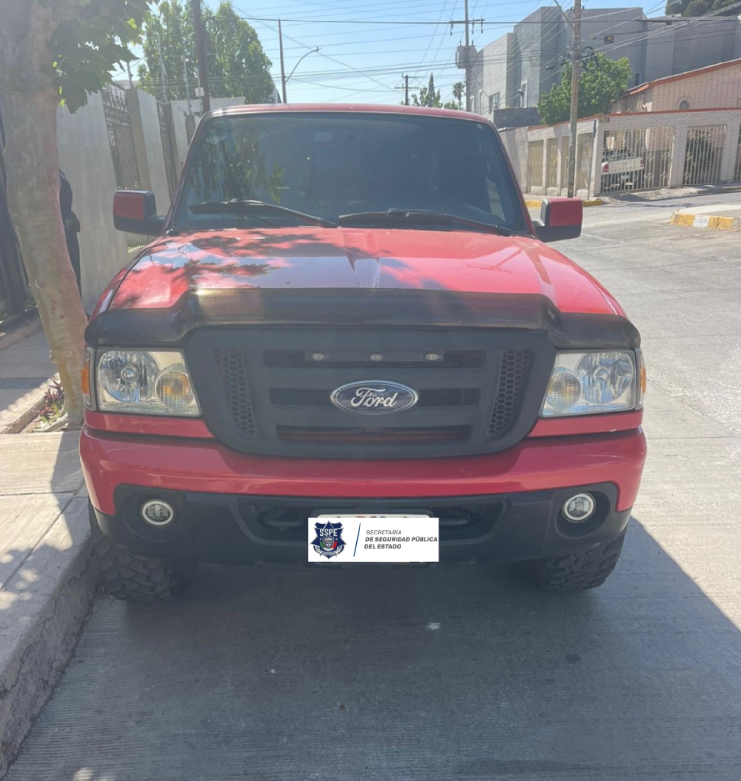 Chihuahua, Chih.- Personal de Movilidad de la Secretaría de Seguridad Pública del Estado (SSPE), aseguró en la ciudad de Chihuahua un vehículo tipo pick up, modelo Ford Ranger 2010 de color rojo, que presentaba reporte de robo con fecha del 21 de abril del presente año.