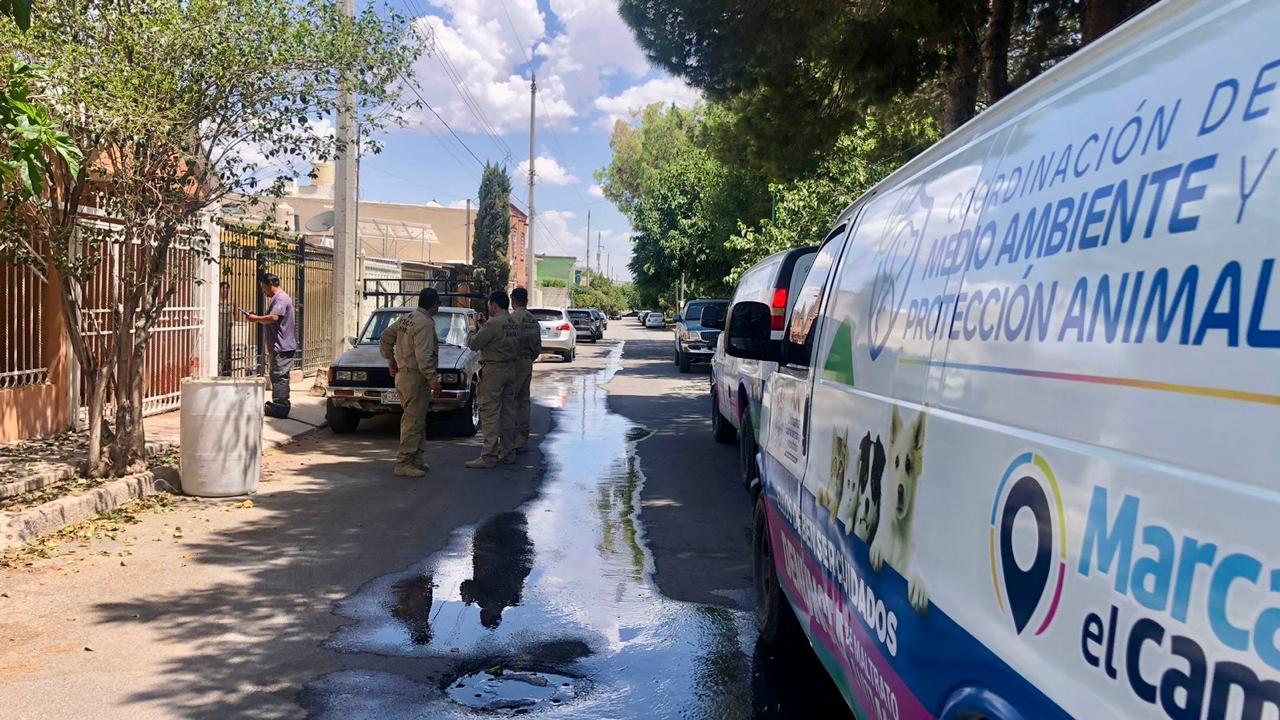 La denuncia fue emitida por el comité de vecinos de la colonia Alamedas I, quienes solicitaron el apoyo de elementos de la Dirección de Seguridad Pública Municipal y de la Brigada de Rescate Animal.