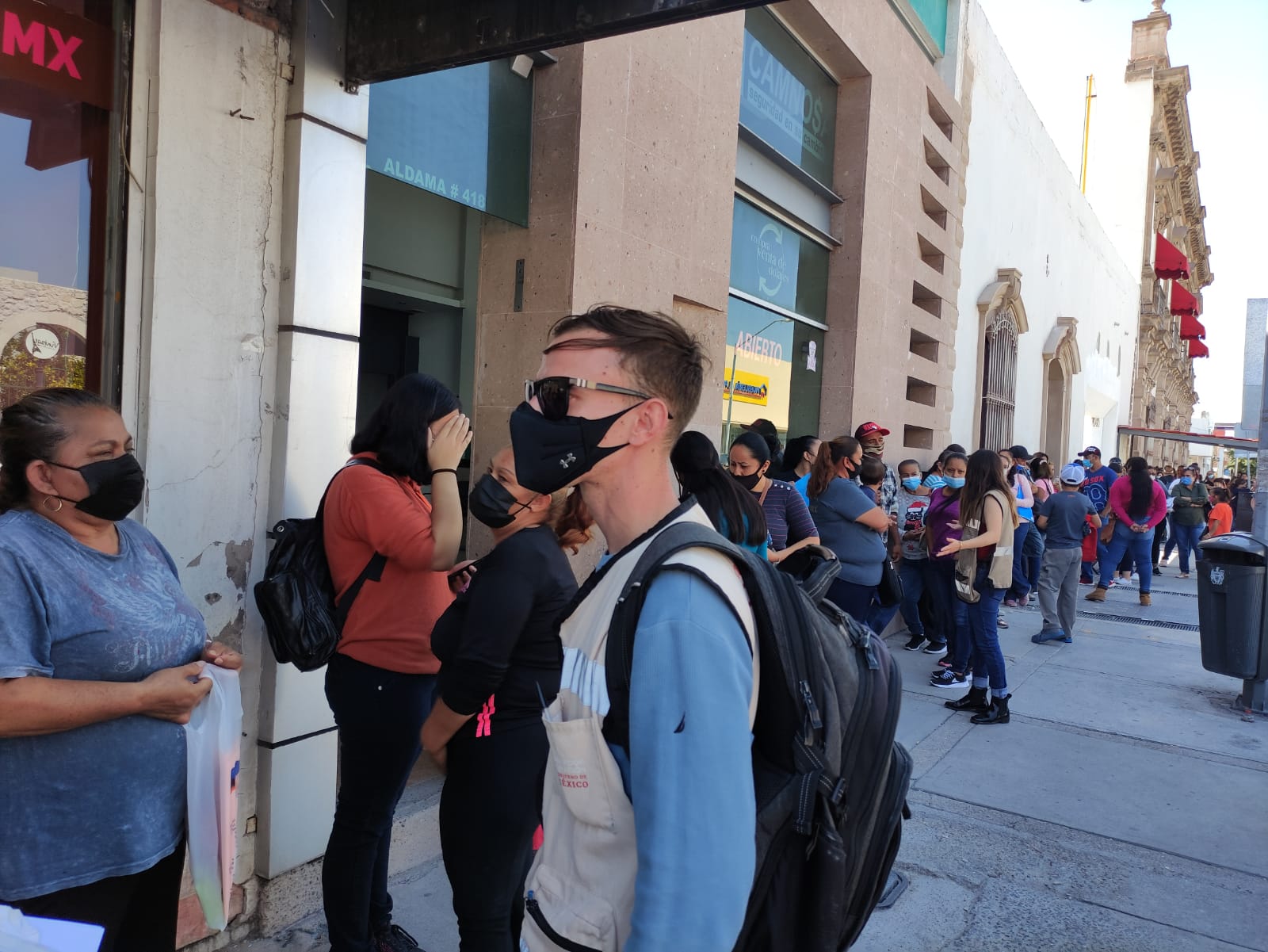 Sumado a ello, un presunto corte de energía eléctrica en el banco retrasó la entrega de apoyos por lo que las filas llegaron hasta la avenida Ocampo.