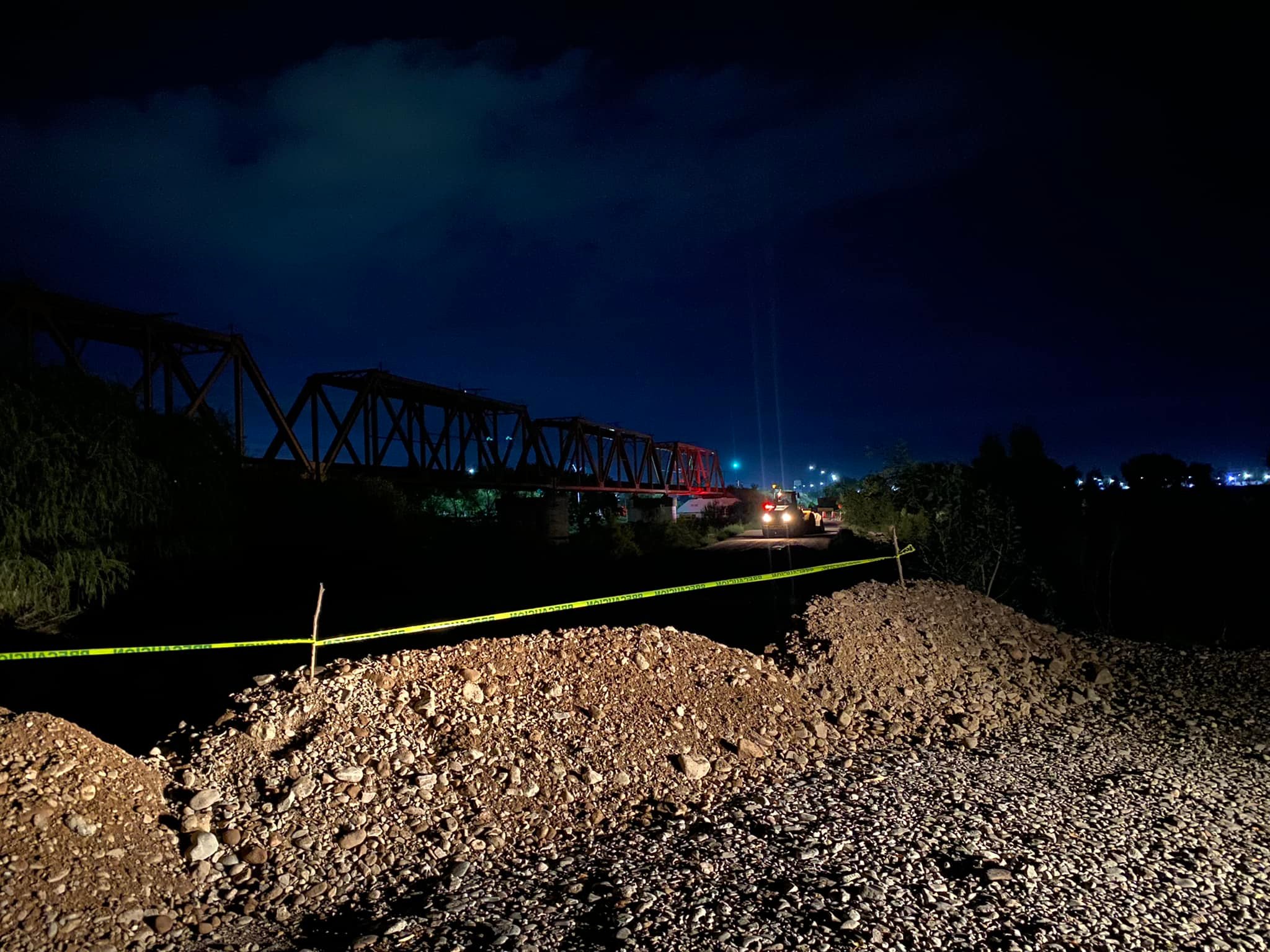 Bloquean acceso del paso provisional y refuerzan bordo del Río San Pedro en Meoqui