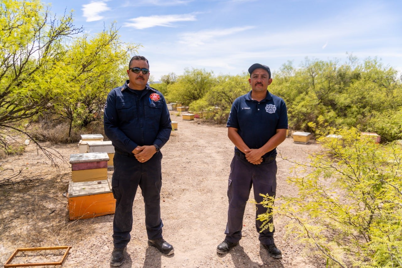 Meoqui, Chih.- Mario Villalobos y Rodolfo Gutiérrez son dos elementos pertenecientes a la Coordinación de Protección Civil y Bomberos de Meoqui, quienes por aproximadamente 9 años han protegido enjambres de abejas, siendo los pioneros dentro de las corporaciones de bomberos a nivel estado en llevar a cabo acciones para la preservación de las abejas.