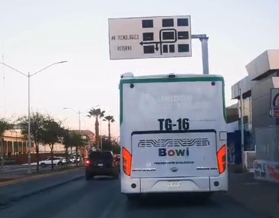 Chihuahua.- Automovilistas captaron una unidad del Bowi circulando fuera del carril confinado la tarde del domingo sobre la avenida Universidad, desde la Glorieta a la División del Norte y hasta el puente de la avenida Teófilo Borunda.