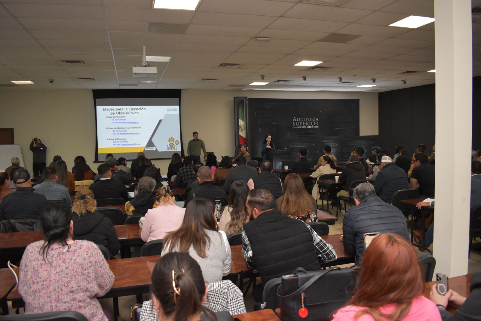 Chihuahua.- La Auditoría Superior del Estado (ASE) reunió a 230 servidores públicos de gobiernos municipales y del Estado; organismos descentralizados y autónomos para impartir el tema Ley de Obras Públicas y Servicios Relacionados con la Misma.