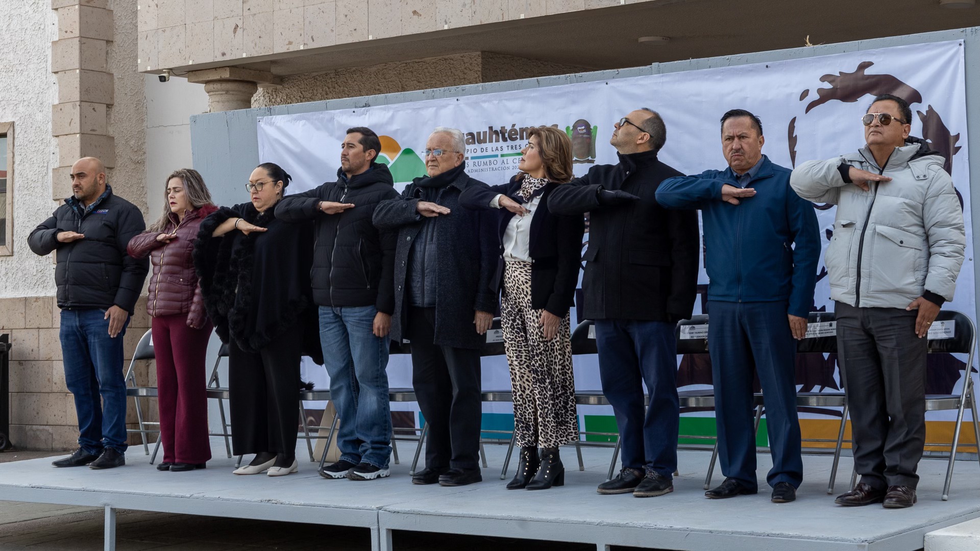 Se llevó a cabo en la explanada de la Presidencia Municipal, donde los Honores a la Bandera fueron dirigidos por la escolta y banda de Guerra de la Secundaria Técnica 51, y la gran bandera fue izada en el asta por elementos de la Dirección de Seguridad Pública Municipal.