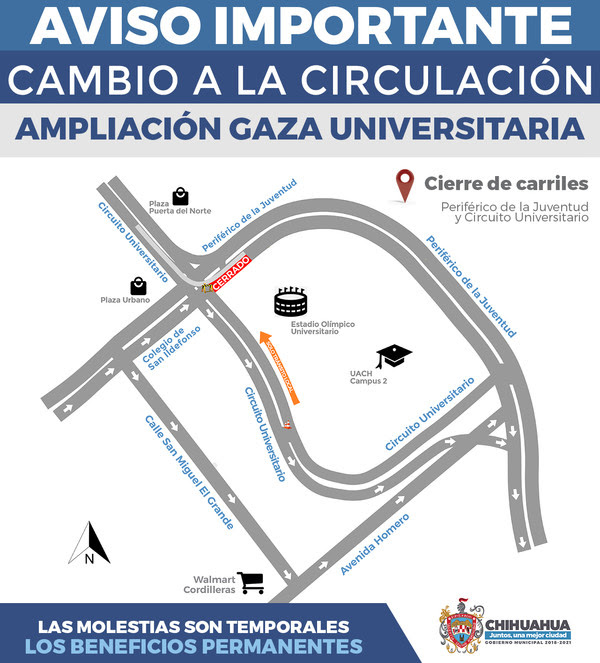 • El Circuito Universitario en sentido sur a norte, estará cerrado, únicamente será utilizado para tránsito local.