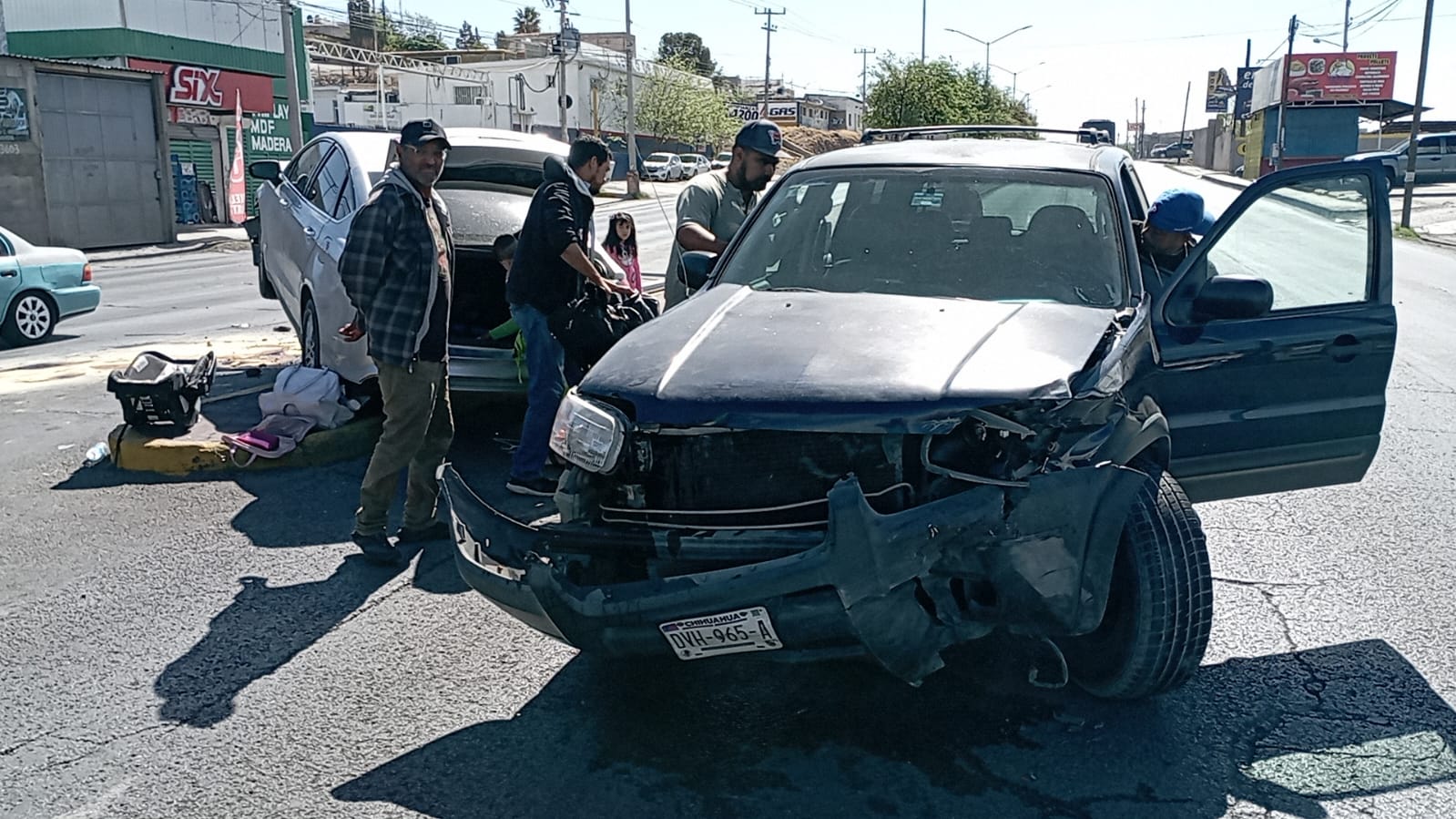 Chihuahua, Chih.- Reportan que el tráfico se encuentra totalmente detenido sobre la avenida Pacheco, cruce con Urquidi en el sentido de norte a sur debido a un aparatoso choque entre una camioneta Ford escape y un vehículo Ford fusion que dejó dos personas lesionadas.