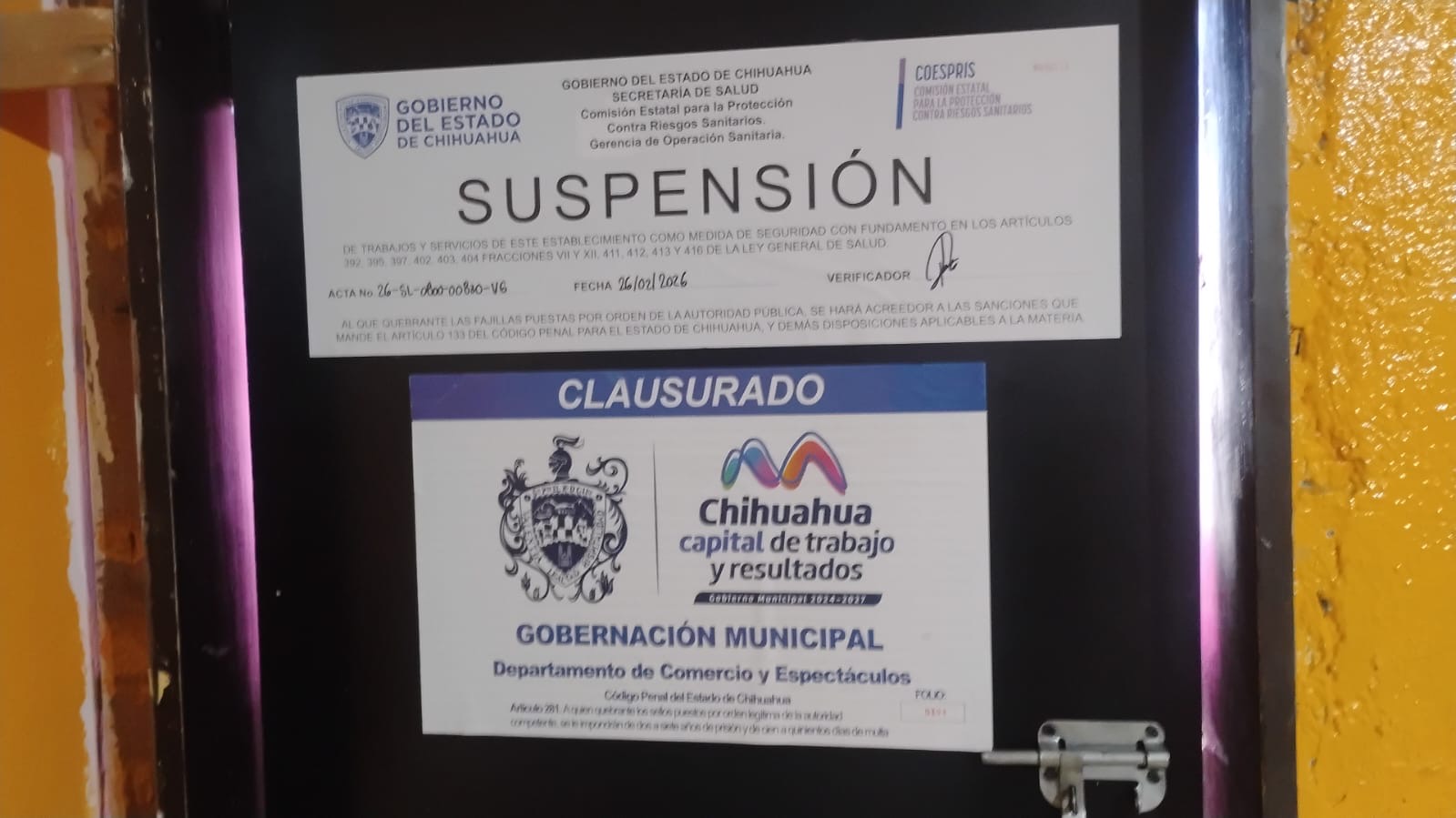 Chihuahua, Chih.- El Gobierno Municipal de Chihuahua, a través de la Subdirección de Gobernación de la Secretaría del H. Ayuntamiento, informa que del 23 de febrero al 1 de marzo se realizaron 217 inspecciones a locales y establecimientos, resultando en 25 actas administrativas y cuatro clausuras en total.