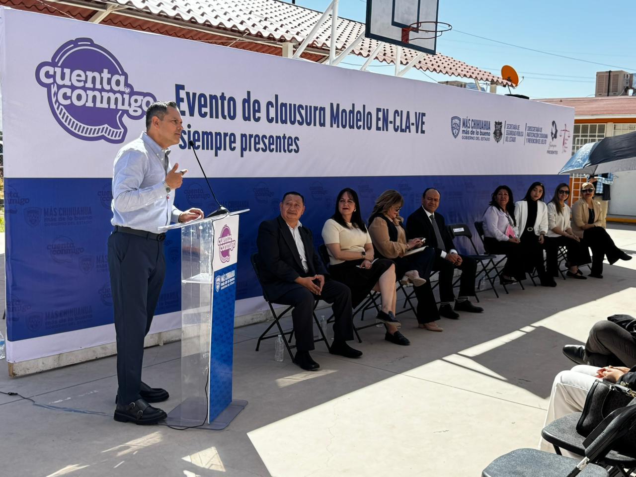 Chihuahua, Chih.- Con el objetivo de prevenir la violencia y fortalecer la seguridad desde la atención a las juventudes, la Secretaría de Seguridad Pública del Estado (SSPE), encabezada por Gilberto Loya, realizó la clausura del modelo EN-CLA-VE “Siempre Presentes” en la Telesecundaria Elisa Griensen, en el municipio de Aquiles Serdán.