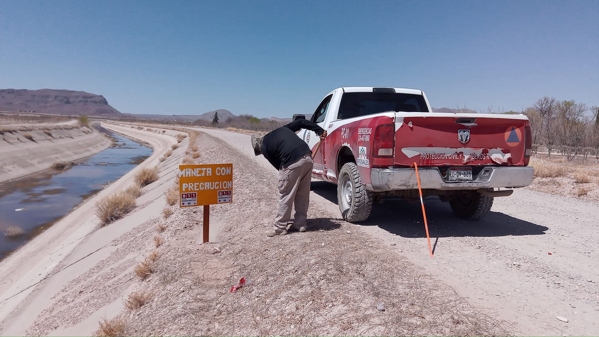 Rosales.- La Coordinación Municipal de Protección Civil colocó señalamientos preventivos en un camino lateral al canal de riego 005, también conocido como el canal principal del Conchos, con la finalidad de concientizar a la población y evitar algún accidente que culmine en tragedia.