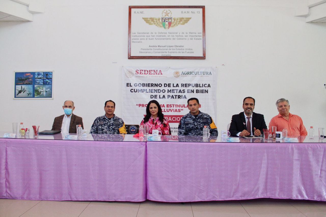 Para culminar con las actividades de este programa federal en beneficio de los estados de Chihuahua y Durango, la titular de la Secretaría de Desarrollo Rural, Lilia Merodio, se reunió en la Base Aérea Militar No. 13, en compañía del director de la Comisión Nacional de la Zonas Áridas, Ramón Sandoval Noriega; el coordinador del Programa de Estimulación de Lluvias de la CONAZA, Héctor Manuel Arias y autoridades del orden Federal.