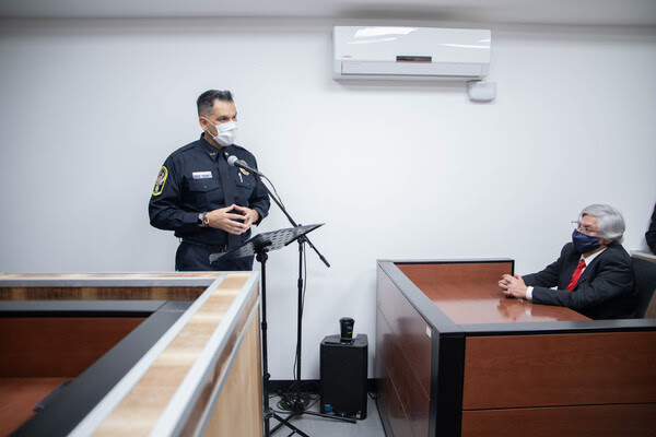 La entrega de reconocimientos se realizó en la sala de audiencias del Centro Municipal de Detenciones, ubicado en la Comandancia Sur y estuvieron presentes el comisario Gilberto Loya Chávez, director de Seguridad Pública, así como el magistrado de la Sexta Sala, Héctor Talamantes Abe, Alejandro Javier Marioni Nájera por parte de la Universidad Regional del Norte y Ricardo Márquez, subdirector de Justicia Cívica de la DSPM.