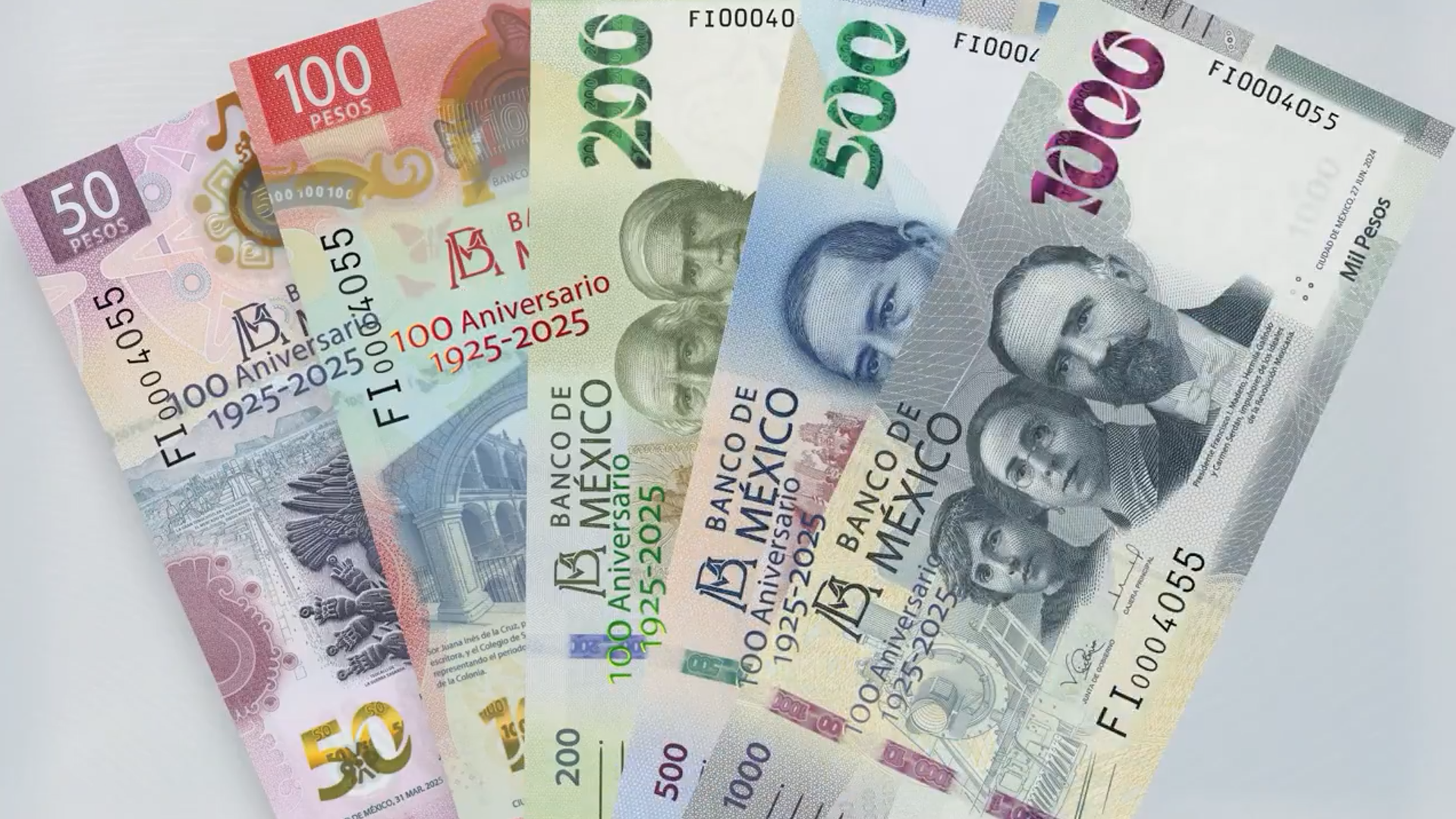 México.- Como parte de los festejos por el centenario del Banco de México, se emitirán billetes conmemorativos de $50, $100, $200, $500 y $1000, que contarán con la leyenda “100 Aniversario 1925-2025” y serán válidos para realizar todas las transacciones cotidianas.
