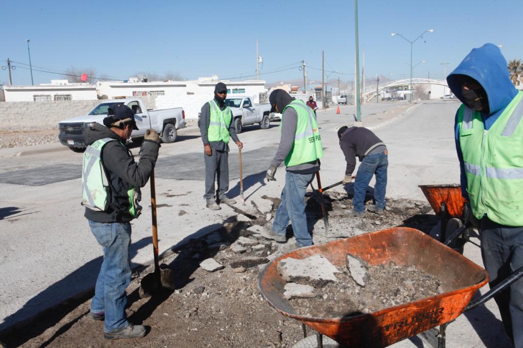 Juárez.- Con el objetivo de mejorar las condiciones de las calles y la imagen urbana de Ciudad Juárez, las Direcciones Generales de Servicios Públicos y Obras Públicas continúan trabajando de lunes a sábado, en la atención y reparación de baches.