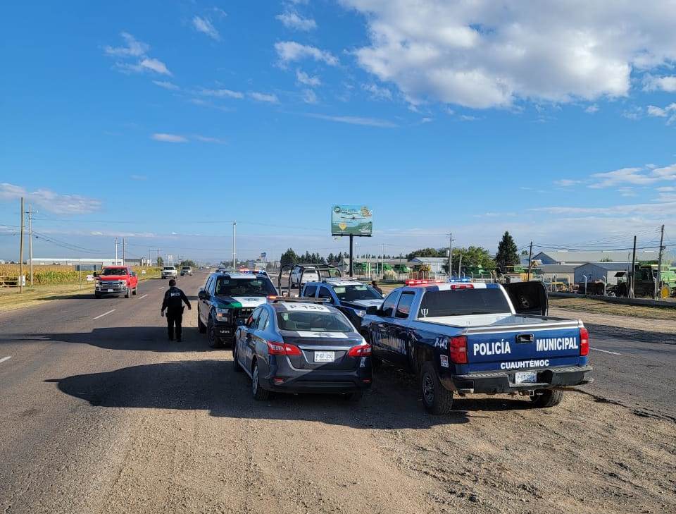 Cuauhtémoc.- Se mantiene la vigilancia en el Corredor Comercial Manitoba por parte de elementos de Tránsito del seccional de Álvaro Obregón y la cabecera municipal. Autoridades destacaron que este operativo, efectuado en la hora de mayor tráfico en esta carretera, obedece al interés de hacer esta ruta más segura para sus guiadores.