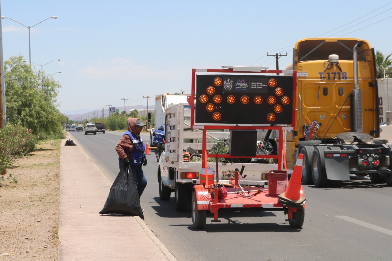 Personal de la Subdirección de Servicios Múltiples, trabaja en la limpieza, corte de hierba, papeleo y pepena con cuadrillas en las principales avenidas ubicadas al sur de la ciudad, tomando como referencia la avenida Teófilo Borunda.