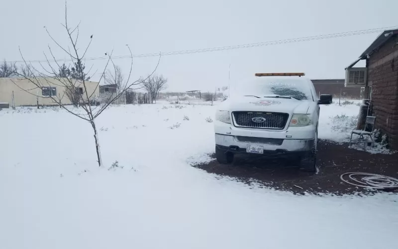 Chihuahua.- La nieve llegó a Ciudad Juárez, Janos y Casas Grandes la mañana de este jueves, de acuerdo con la información que proporcionó la Coordinación Estatal de Protección Civil facilitada por las unidades municipales de Protección Civil de los 3 municipios en mención.