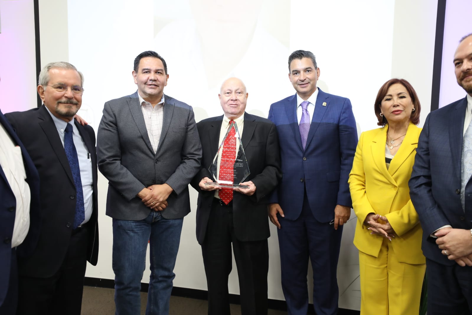 Junto con el presidente del Colegio Estatal del Notariado Chihuahuense, Fernando Rodríguez García y el director general del Notariado y Registro Público, Manuel Tabuenca, entregaron un reconocimiento al notario Delgado Muñoz por su trayectoria y aporte a la función del notariado, quien tomó la decisión de retirarse de esta actividad.