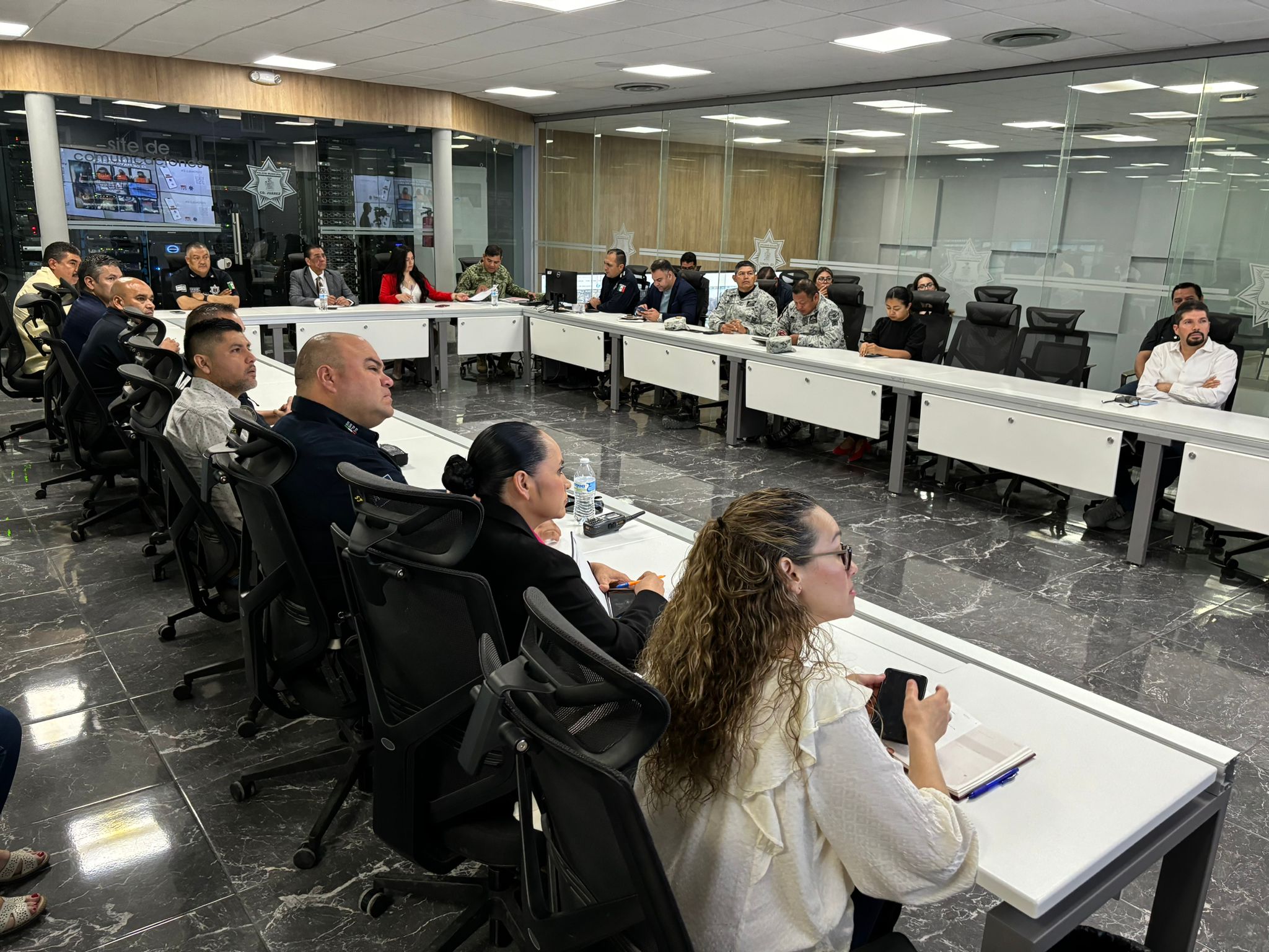 Juárez.- Representantes de los tres órdenes de Gobierno analizaron el tema de seguridad durante la última semana, en la reunión de la Mesa de Coordinación para la Construcción de la Paz, la cual se desarrolló en el Centro de Emergencia y Respuesta Inmediata de la Secretaría de Seguridad Pública Municipal.