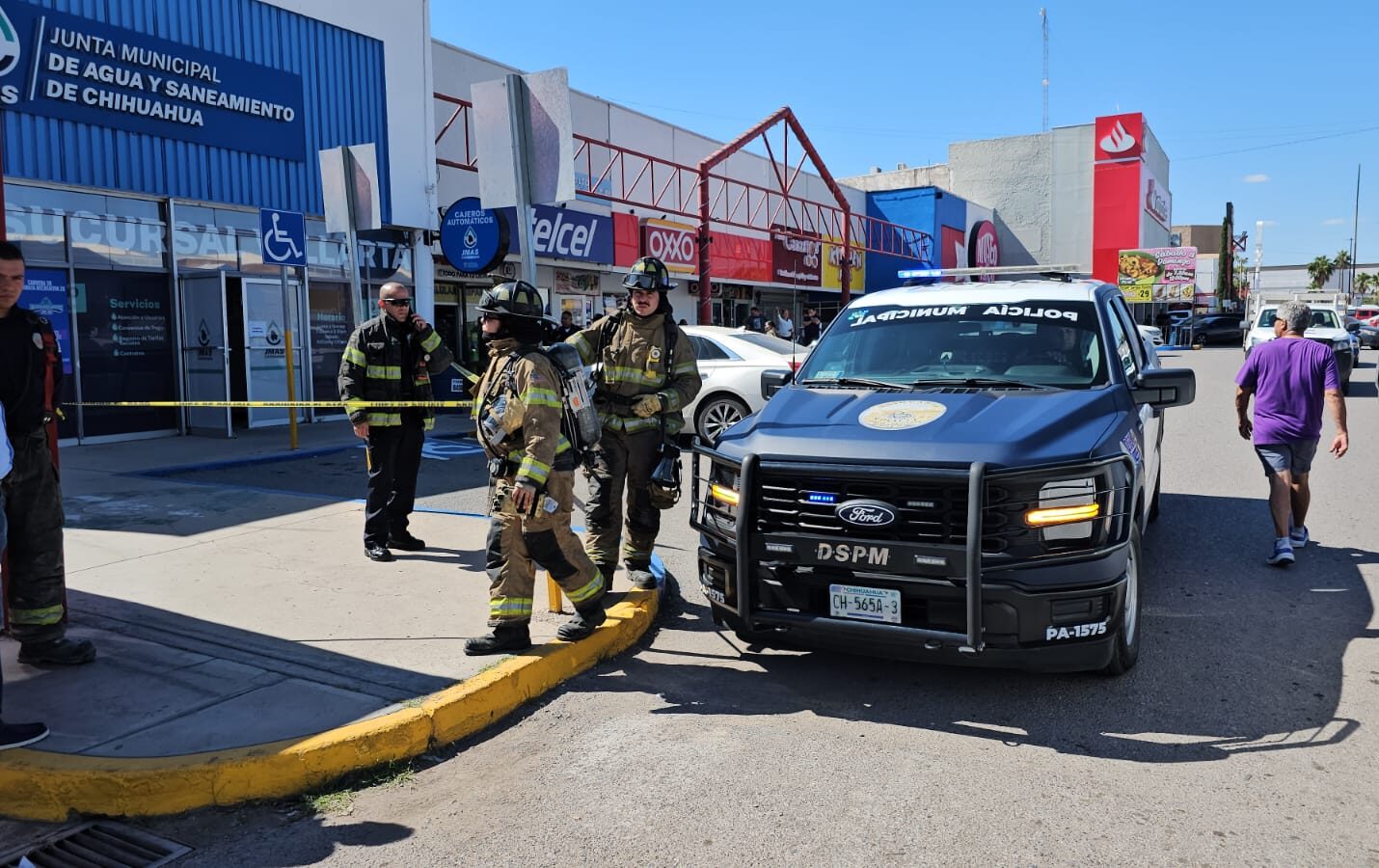Chihuahua.- Al número de emergencia se reportó una fuga de gas en las oficinas de La Junta Municipal de Agua y Saneamiento (JMAS), ubicadas en Plaza Vallarta, sobre la avenida Tecnológico y calle Catalpa.