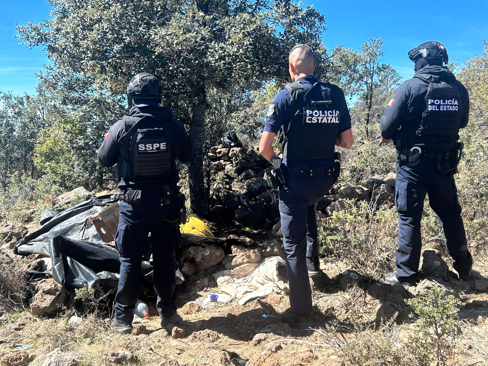 Guachochi, Chih.- Como parte de las acciones permanentes de vigilancia y combate a la delincuencia organizada en la zona serrana, la Secretaría de Seguridad Pública del Estado (SSPE), a través de la Subsecretaría de Despliegue Policial, llevó a cabo la destrucción de campamentos improvisados presuntamente utilizados por civiles armados en el municipio de Guachochi.