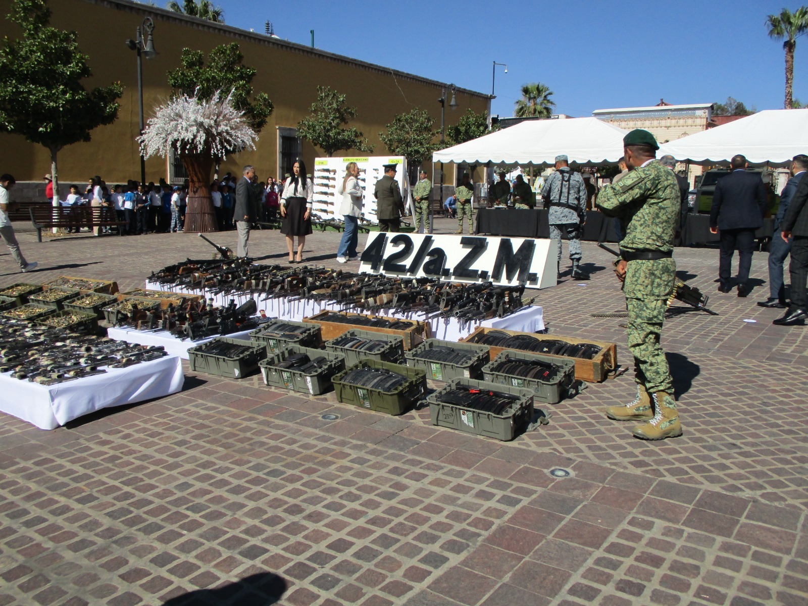 Durante el evento, que estuvo encabezado por el Comandante del 76 Batallón de Infantería, de la 42 Zona Militar, Agustín Velasco Sánchez, se destruyeron un total de 354 armas de fuego, entre fusiles, armas cortas, cargadores y cartuchos de diversos calibres.