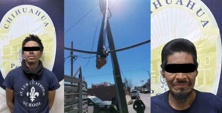 Chihuahua, Chih.- Autoridades de Seguridad Pública municipal lograron la detención de dos personas que fueron sorprendidas en flagrancia robando cable telefónico propiedad de TELMEX en la colonia Camino Real.