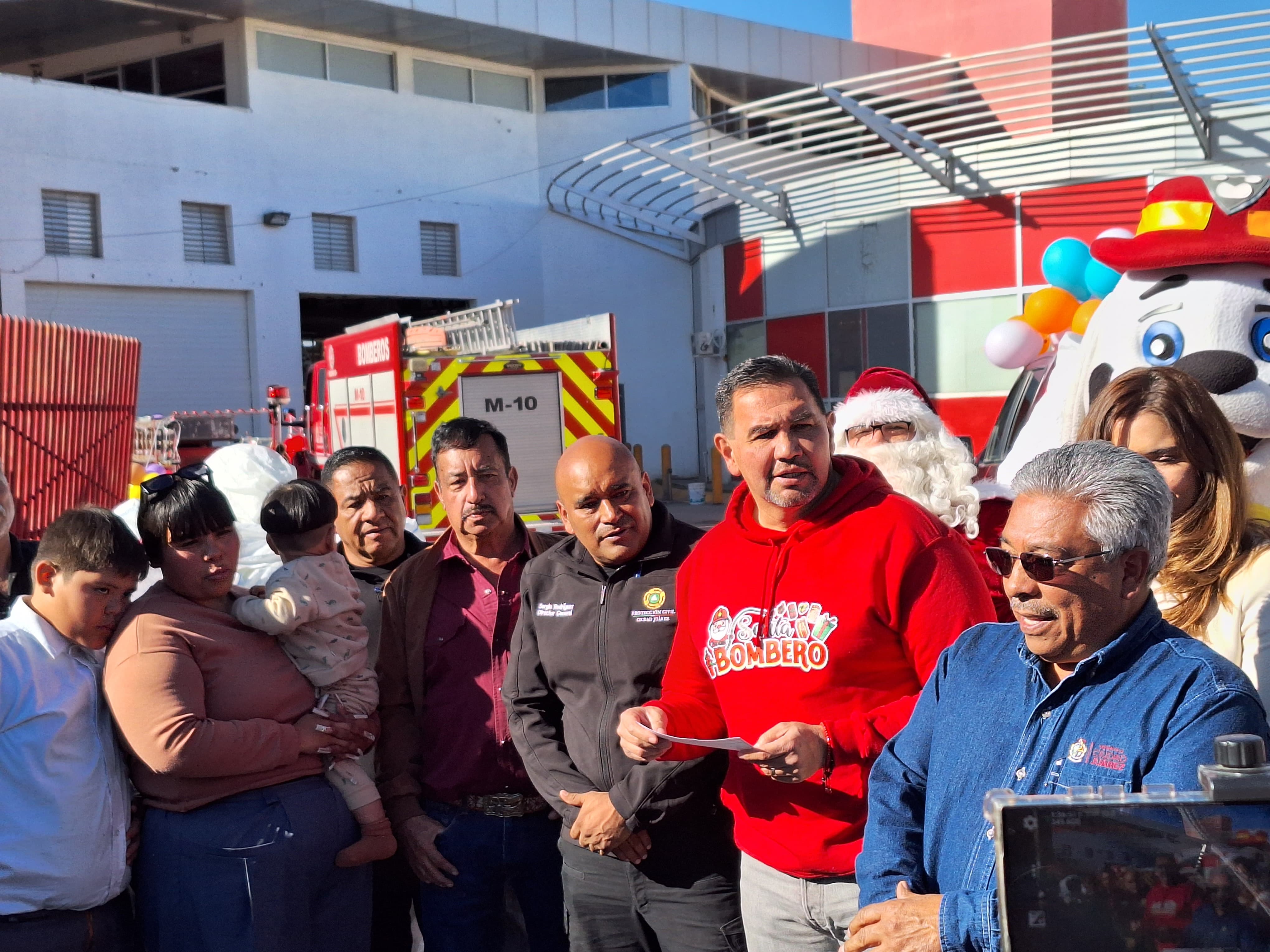 Juárez.- Integrantes de mercados populares de Ciudad Juárez llegaron en caravana a Protección Civil, donde el presidente Cruz Pérez Cuéllar recibió el donativo por más de 16 mil juguetes para la colecta de Santa Bombero.