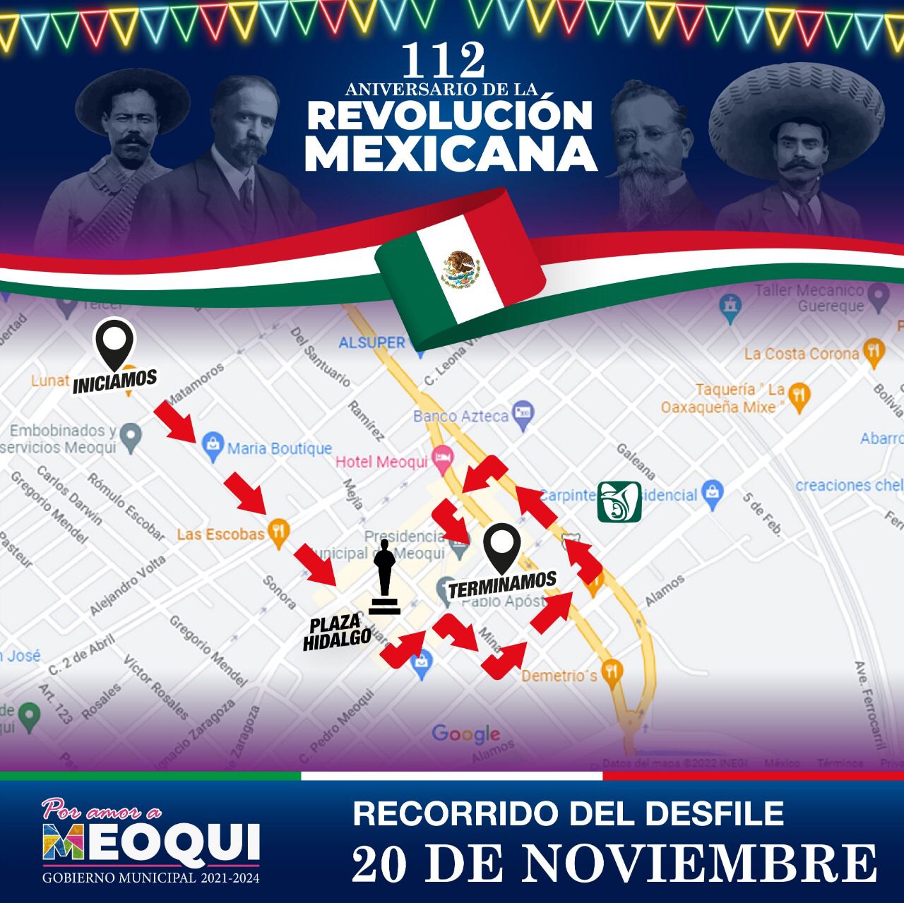 Con desfile y verbena en Meoqui se conmemorará este domingo el 112 Aniversario del Inicio de la Revolución Mexicana y simultáneamente Ferias Regionales “Juntos Producimos” y desde el Bulevar Eduardo Nájera, se estará llevando a cabo la 6ª Edición del Meoqui-Rosetilla Race.