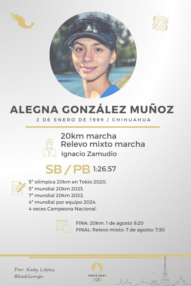 “Alegna Ariday González Muñoz, quien desde pequeña ha brindado grandes glorias al estado y a México, de nueva cuenta representará a nuestro país en la prueba de marcha”, refirió.