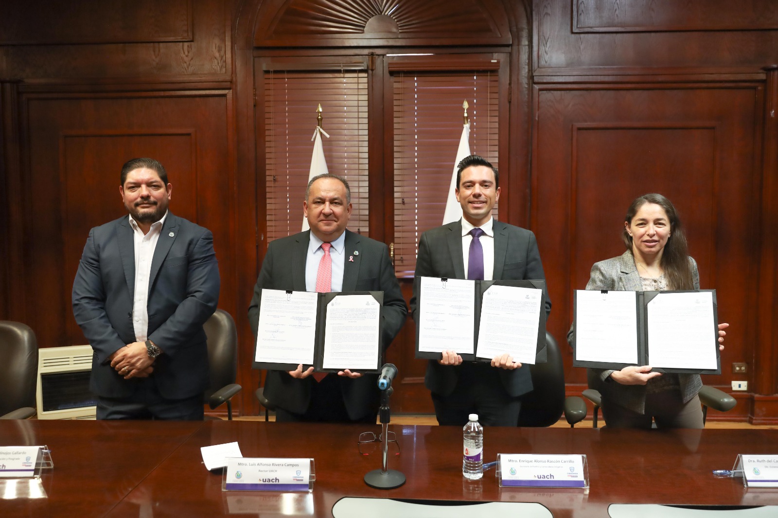 Chihuahua.- La Universidad Autónoma de Chihuahua (UACH), y la Secretaría de Pueblos y Comunidades Indígenas (SPyCI), formalizaron un convenio para colaborar en la promoción y desarrollo de programas asistenciales, educativos y de investigación, en beneficio de jóvenes de los pueblos originarios.