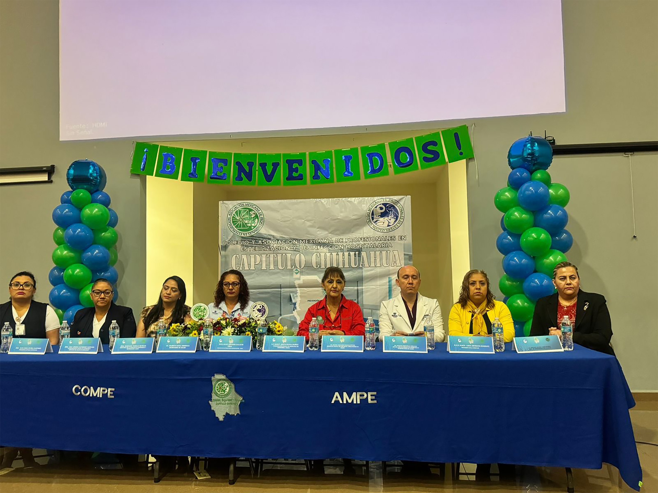 Chihuahua.- En el marco del 17° Simposio de Esterilización y Desinfección Hospitalaria, la UACH, a través de la Facultad de Enfermería y Nutriología, formalizó una alianza académica y profesional con la Asociación Mexicana de Profesionales en Esterilización, A.C. (AMPE), con el propósito de fortalecer la formación, la capacitación continua y el desarrollo profesional en el área de la esterilización hospitalaria y el control de infecciones.