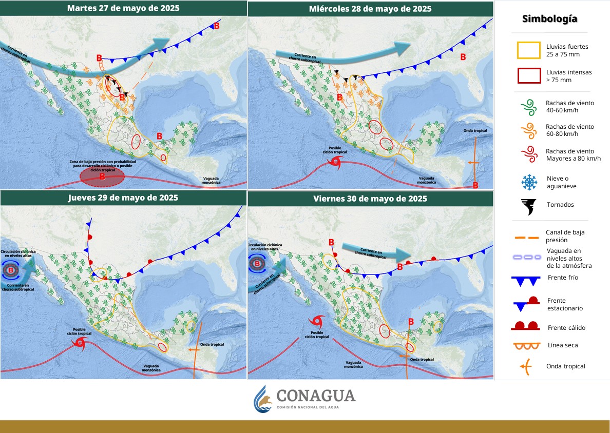 Asimismo, para este martes 27 de mayo del 2025 se mantendrá el ambiente de caluroso a muy caluroso con máximas de 40ºC a 45ºC, con ello, un ambiente de caluroso a muy caluroso a partir del mediodía, en contraste, ambiente fresco a templado y frío por la mañana.