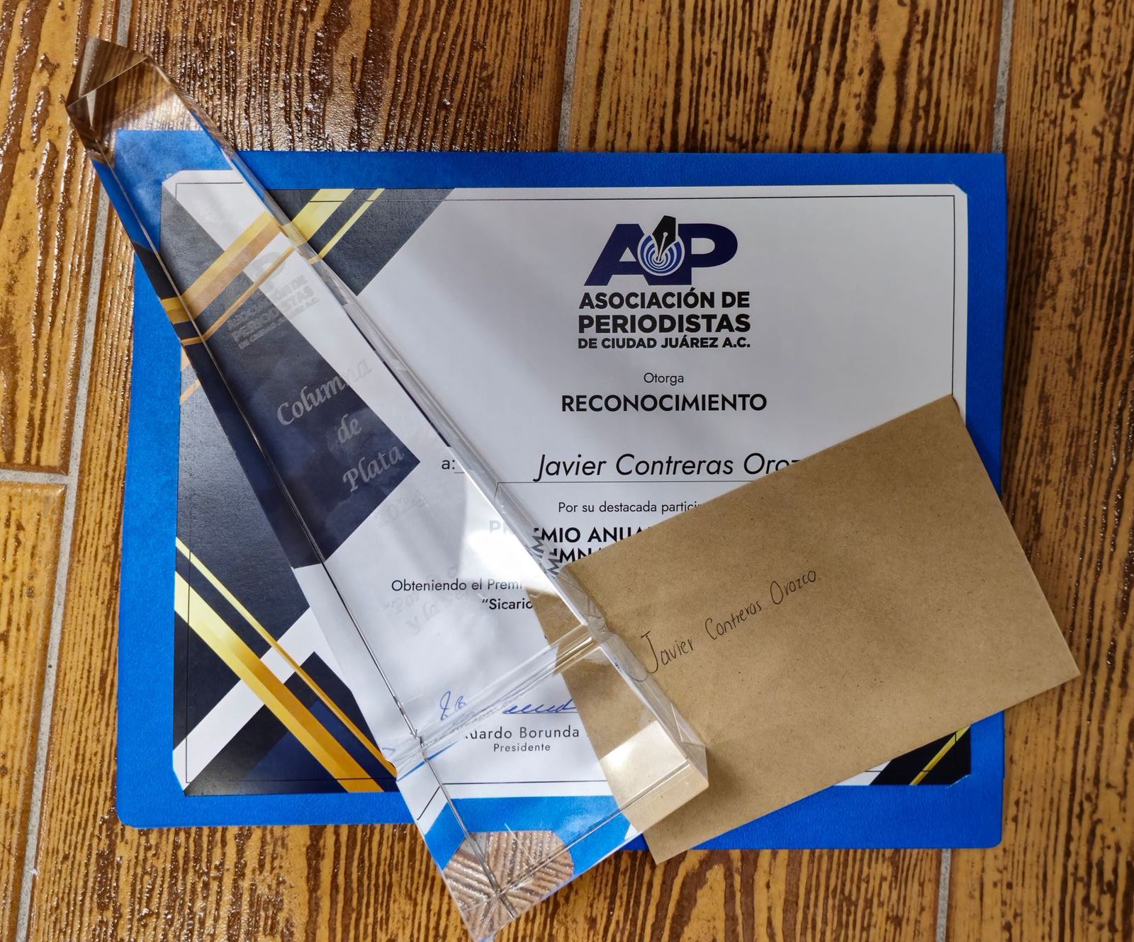 Chihuahua.- El Dr. Javier Horacio Contreras Orozco, Director de la Facultad de Filosofía y Letras de la Universidad Autónoma de Chihuahua, ha sido galardonado con la Columna de Plata en la categoría de Artículo de Opinión, un reconocimiento otorgado por la Asociación de Periodistas de Ciudad Juárez (APCJ) en su 44ª edición.