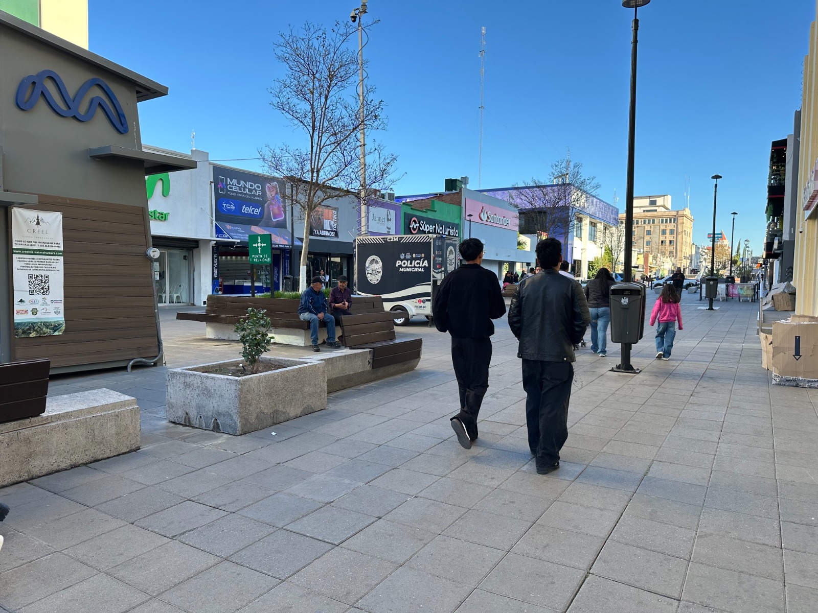Chihuahua, Chih.- Para que las familias puedan comprar tranquilamente y seguros este “Buen Fin”, la Dirección de Seguridad Pública Municipal (DSPM), mantienen un operativo en el primer cuadro del Centro Histórico, mediante el Grupo Beta y la tecnología de la Plataforma Escudo Chihuahua Capital.