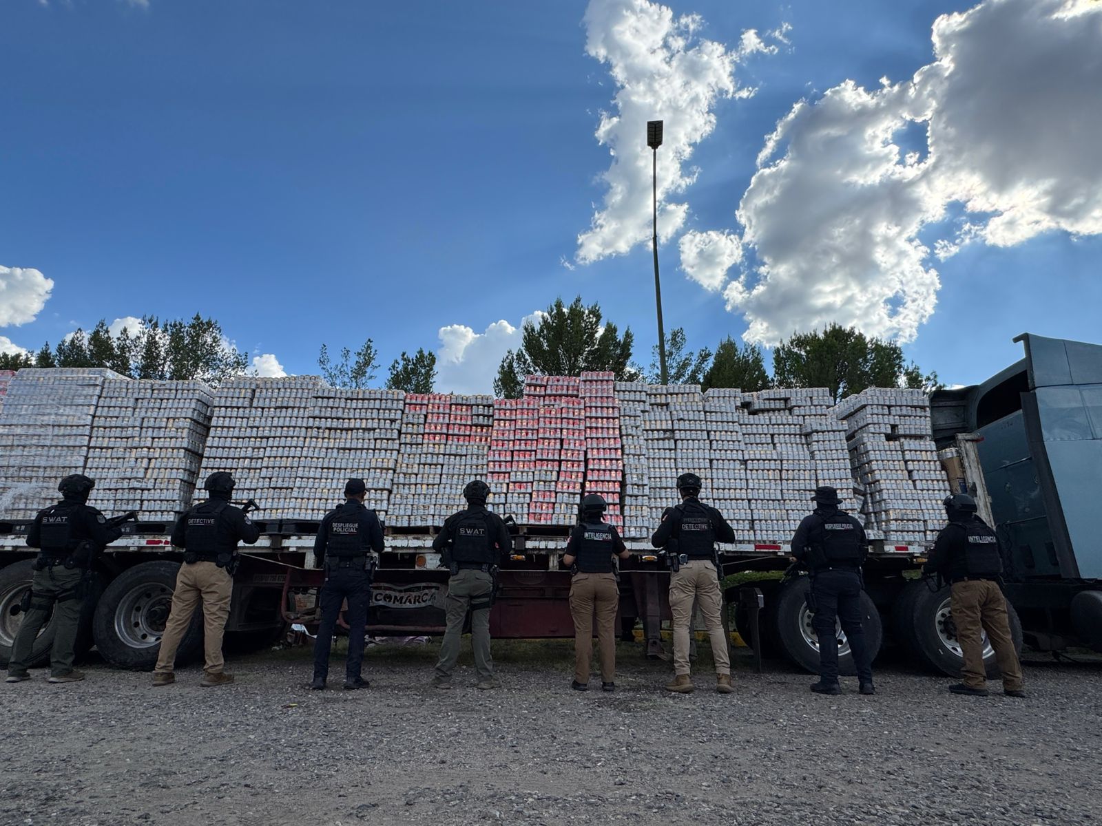 Parral, Chih.- Como parte de las acciones de seguridad implementadas esta semana en la región sur del estado, la Secretaría de Seguridad Pública del Estado (SSPE), a través de las Subsecretarías de Estado Mayor, Despliegue Policial e Inteligencia y Análisis Táctico, aseguró un tractocamión cargado con mercancía ilícita valuada en 1 millón 700 mil 900 pesos, consistente en 3 mil 581 paquetes de cerveza que equivalen a 85 mil 944 latas.