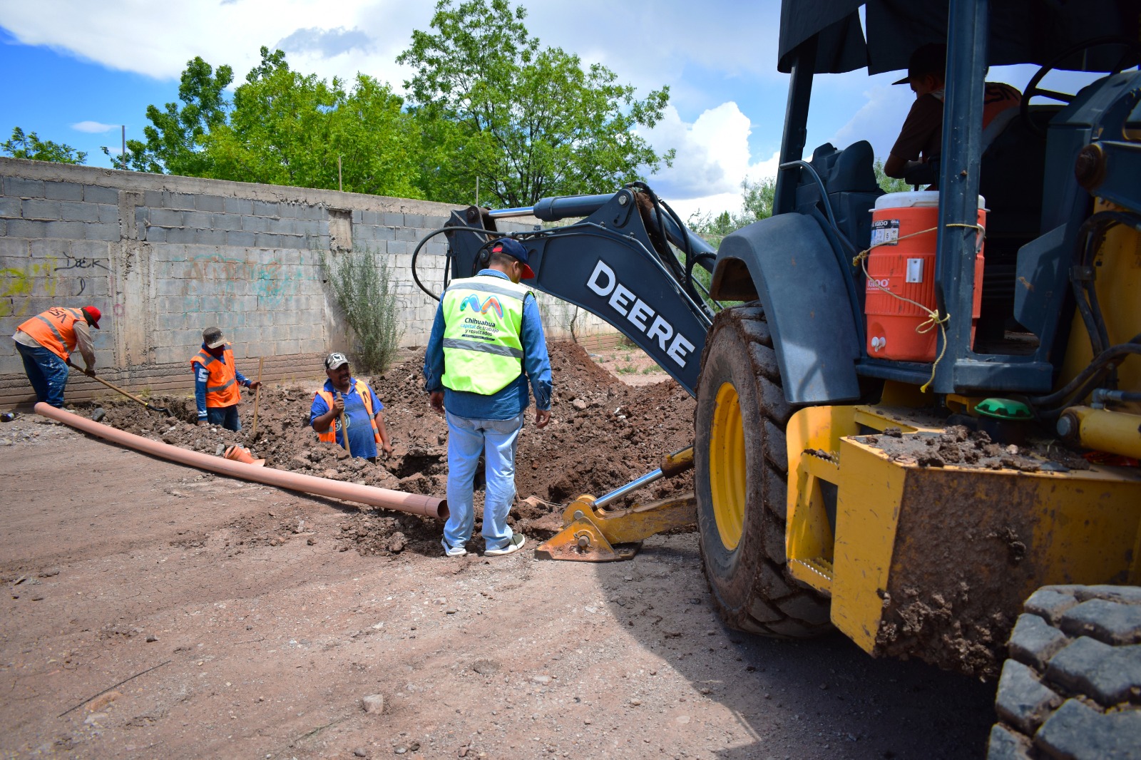 Chihuahua.- Familias que habitan en la colonia Sierra Azul, pronto contarán con sistema de drenaje en sus hogares, gracias a los trabajos que el Gobierno Municipal que encabeza el alcalde Marco Bonilla, está realizando con el fin de mejorar la calidad de vida de 3 mil 900 personas.