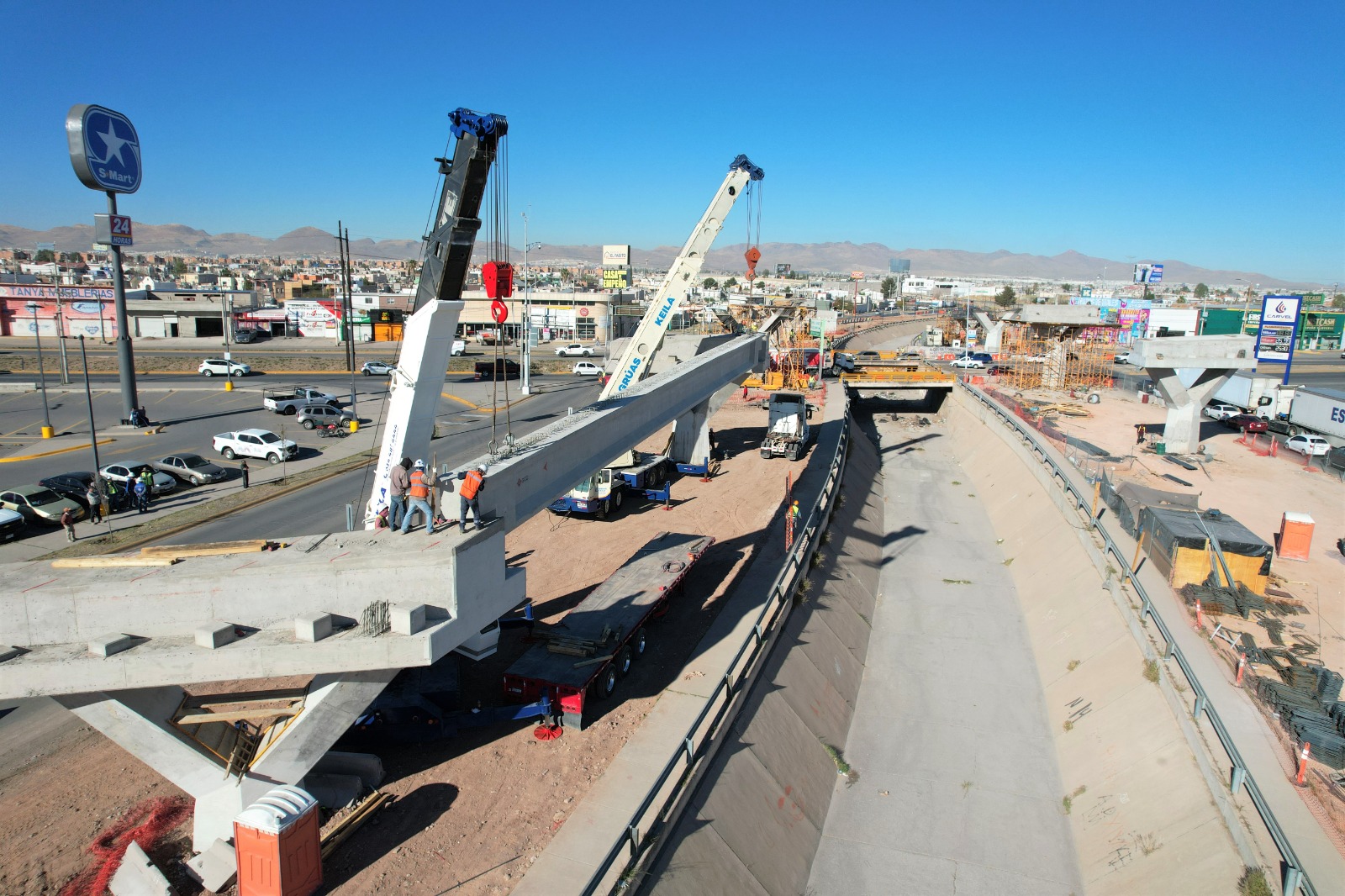 Instalan trabes en Paso Superior de vialidad Los Nogales y avenida de las Industrias