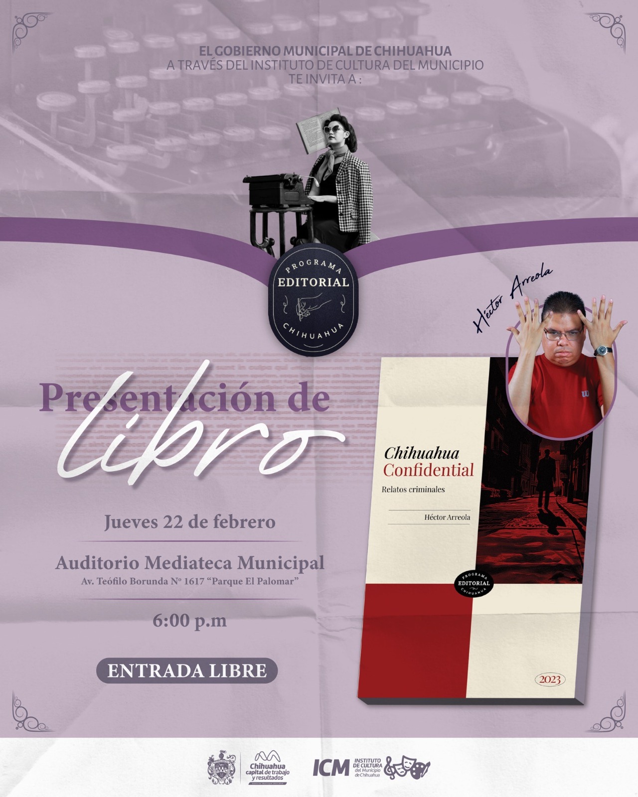 Chihuahua.- El Gobierno Municipal de Chihuahua, a través del Instituto de Cultura del Municipio (ICM), invita a la presentación oficial del libro “Chihuahua Confidential”, una obra destacada del autor Héctor Arreola.