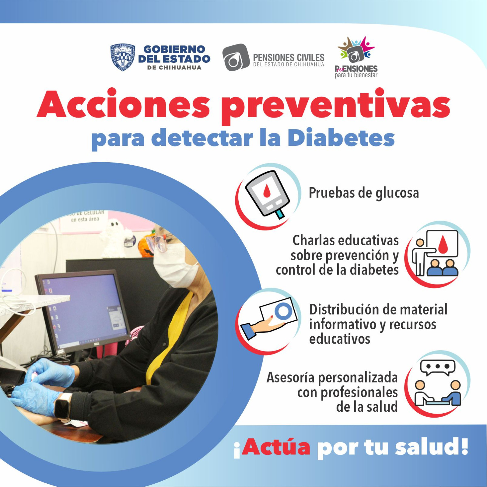 Chihuahua, Chih.- En conmemoración del Día Mundial de la Prevención de la Diabetes, Pensiones Civiles del Estado (PCE) invita a la población derechohabiente y público en general, a participar en la campaña “Actúa por tu salud” este 14 de noviembre, para concientizar sobre la importancia de prevenir, detectar y controlar esta enfermedad crónica que afecta a millones de personas en el mundo.