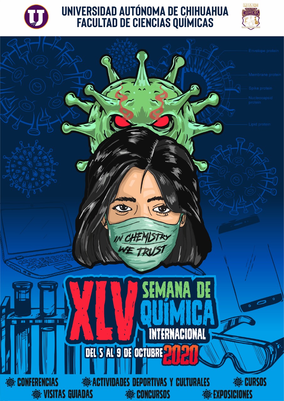 La Facultad de Ciencias Químicas de la Universidad Autónoma de Chihuahua, invita a participar XLV Semana de Química Internacional que se llevará a cabo del 5 al 9 de octubre, que, por esta ocasión, se realizará de manera virtual, en la que el amor por la ciencia y la química que hará sentir conectados a las y los participantes de todos lados del mundo.