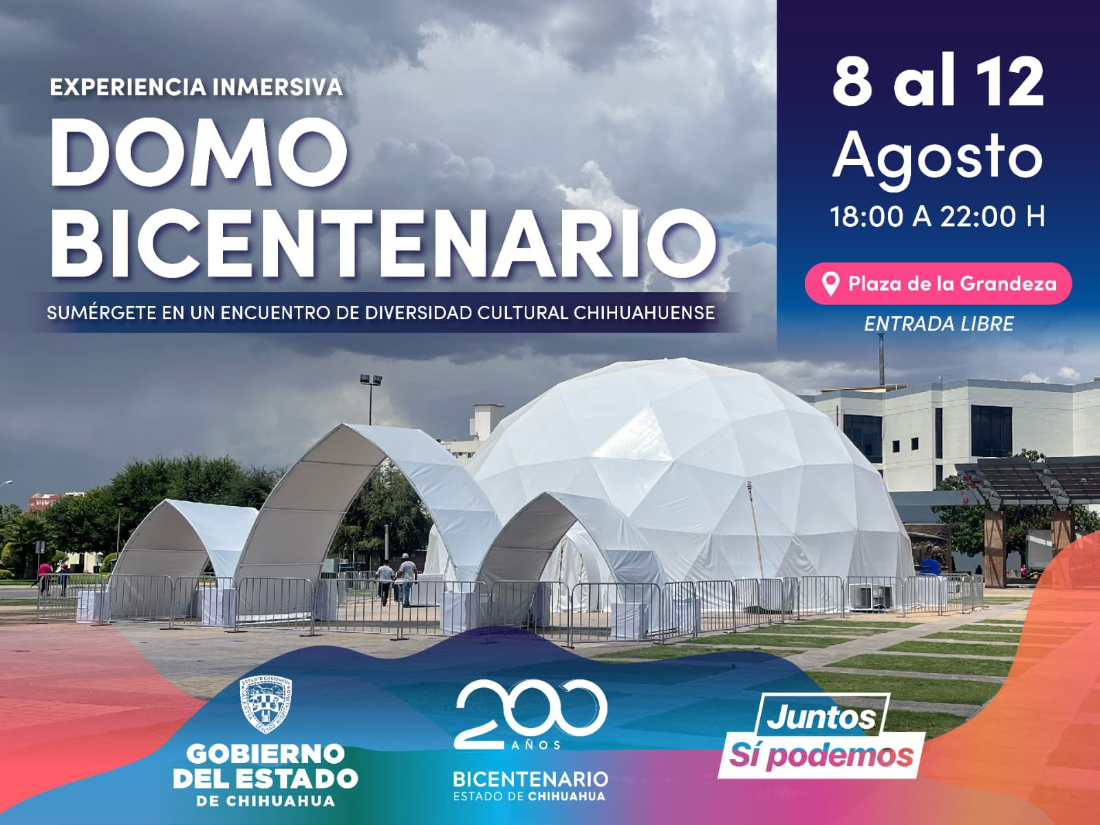 Chihuahua.- En el marco de la conmemoración por el Bicentenario de Chihuahua como Estado libre y soberano, la Secretaría de Cultura invita a la comunidad a conocer las 8 Regiones Culturales de la entidad, que serán exhibidas en el Domo Inmersivo instalado en la Plaza de la Grandeza.