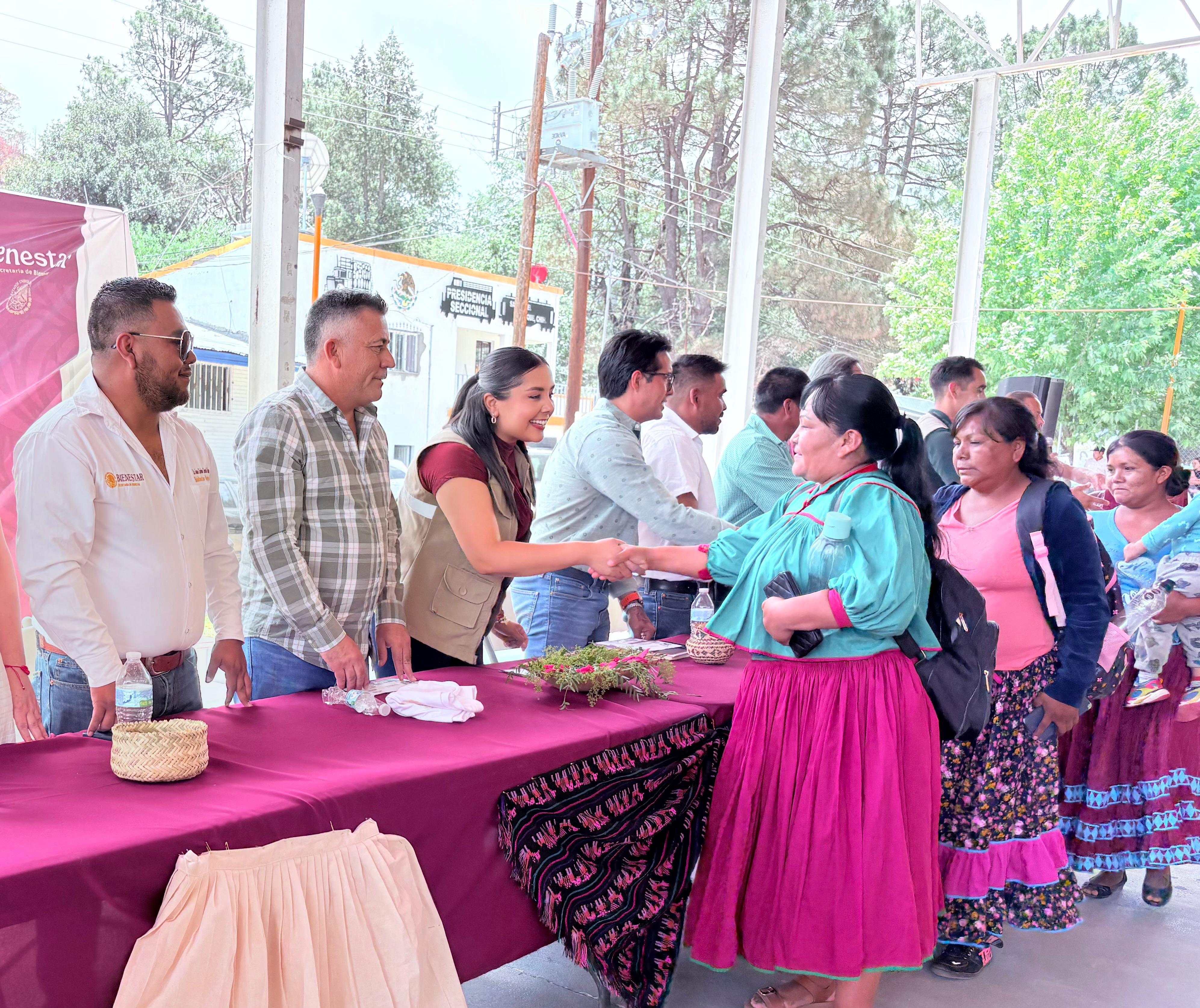 Urique.- La delegada de Programas para el Bienestar en Chihuahua, Mayra Chávez Jiménez, encabezó, esta mañana, en el poblado de San Rafael del municipio de Urique, enclavado en la Sierra Tarahumara, la entrega de 302 tarjetas de Banco del Bienestar a 277 Comités de padres de familia del programa La Escuela Es Nuestra (LEEN), que atenderá a 277 planteles de Educación Básica y 25 de Educación Media Superior, con una inversión social de $75,050,000.00.