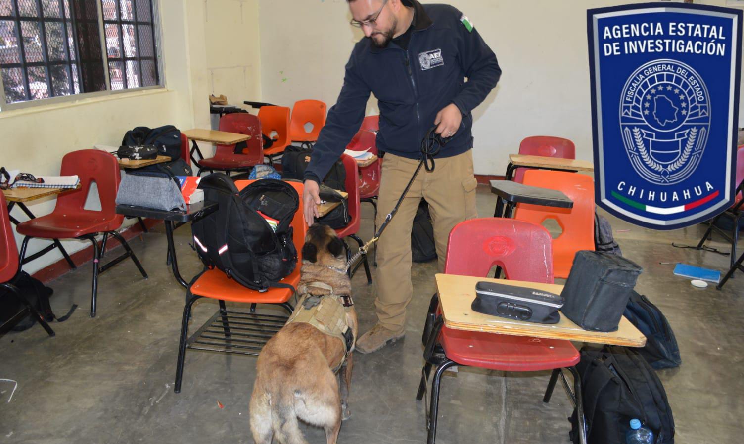 Parral.- Elementos de la Agencia Estatal de Investigación adscritos a la Unidad de Análisis e Inteligencia de la Fiscalía General del Estado, efectuaron el Operativo Conjunto denominado “Mochila siempre Segura”, en la escuela secundaria Dr. José María Luis Mora de la ciudad de Parral.