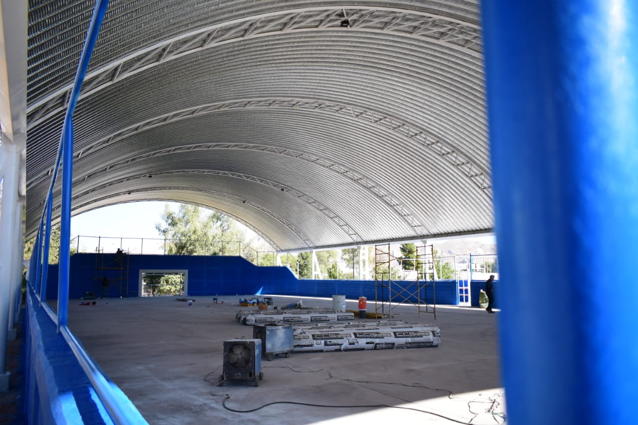Chihuahua.- Dentro de los proyectos de Presupuesto Participativo 2021, se encuentran diversas propuestas de mejoras o nuevos espacios para los centros de educativos, como el caso del Tecnológico de Chihuahua I, ubicado en la avenida Tecnológico frente a la Ciudad Deportiva, en el cual el Gobierno Municipal trabaja en la rehabilitación de la cancha de futbol rápido y en la construcción de una techumbre sobre la misma, cuyo avance es del 85 por ciento.