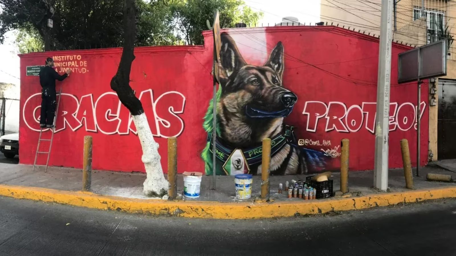 Tlalnepantla.- Dice el dicho que “¡Honor a quien honor merece!”. Al menos así lo consideraron integrantes del Instituto Municipal de la Juventud (IMJ), del municipio de Tlalnepantla de Baz, al homenajear a través de un mural, a Proteo, el canino rescatista del escuadrón de ayuda humanitaria de la Secretaría de la Defensa Nacional (Sedena), que perdió la vida en Turquía.
