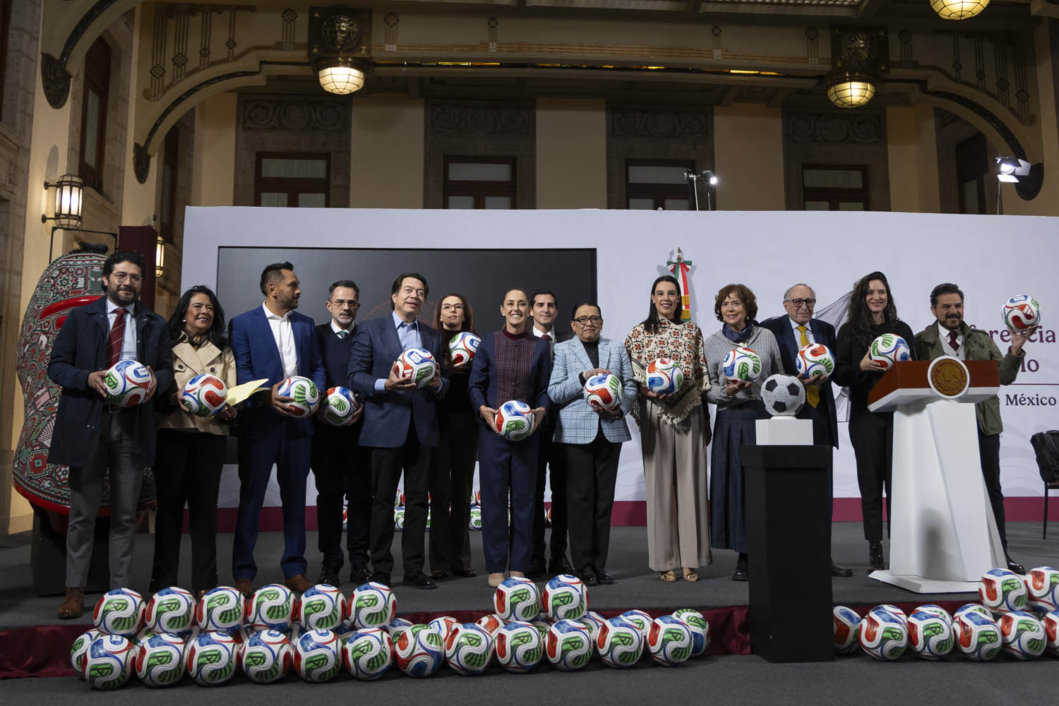 La coordinadora de los trabajos del Gobierno Federal para el Mundial 2026, Gabriela Cuevas Barron, explicó que el Mundial Social pone a la gente al centro de los trabajos rumbo a la Copa Mundial FIFA 2026 —justa deportiva que se llevará a cabo en México, Estados Unidos y Canadá— a través de 177 Fiestas México 2026; 5 mil actividades, rutas y la aplicación Conoce México; tres Récord Guinness; acciones dentro del programa Nuestra grandeza cultural; 74 Mundialitos y copas de distintas categorías; mil 483 actividades de Vive saludable, juega feliz; un mundialito de robótica; dos estrategias de Quién es Quién en el mundial; 4 mil 208 recuperaciones de canchas y rescate de espacios públicos; así como 10 mil 631 murales de arte urbano.