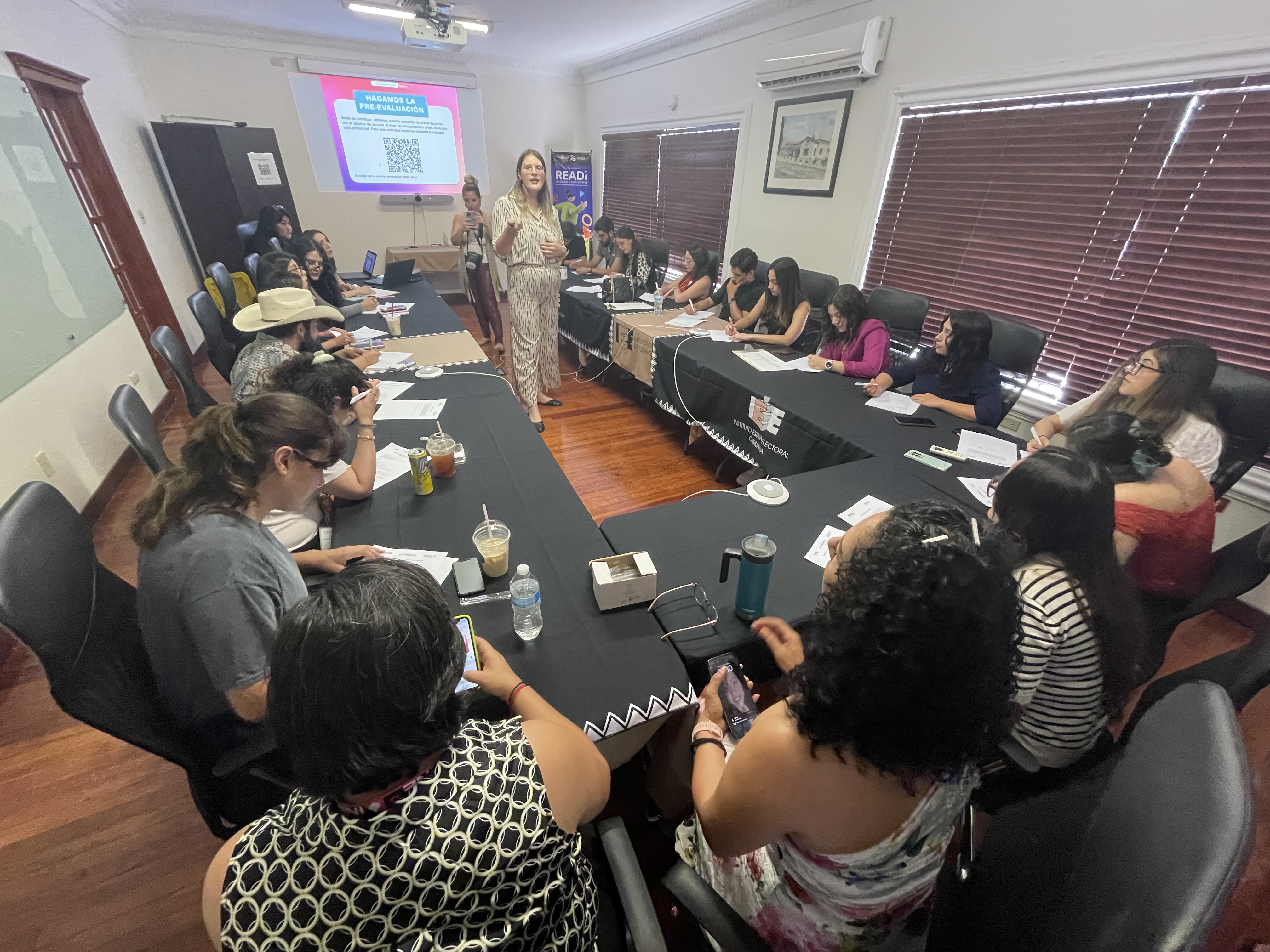 Chihuahua.- El Instituto Estatal Electoral sirvió como sede para que Victoria Laphond, representante en Chihuahua de #JuventudActúaMX, encabezara una consulta con 20 jóvenes chihuahuenses para conocer su visión e inquietudes sobre temas electorales y de participación ciudadana.